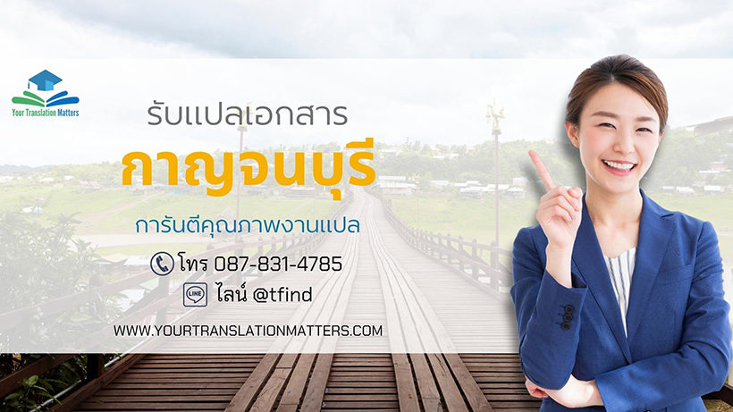 รับแปลเอกสารจังหวัดกาญจนบุรี พร้อมรับรอง เรายินดีให้บริการแปลเอกสารจังหวัดกาญจนบุรี ในฐานะตัวแทนแปลมืออาชีพ เราเข้าใจถึงความสำคัญของการสื่อสารที่ถูกต้องและมีประสิทธิภาพในโลกยุคโลกาภิวัตน์ ทีมนักแปลที่มีประสบการณ์ของเรามีความเชี่ยวชาญในการแปลเอกสารหลากหลายประเภทจากภาษาไทยเป็นภาษาอังกฤษ เพื่อให้มั่นใจว่าความหมายและน้ำเสียงของข้อความต้นฉบับจะถูกรักษาไว้ในระหว่างกระบวนการแปล ไม่ว่าคุณต้องการบริการแปลเพื่อวัตถุประสงค์ด้านกฎหมาย ทางการแพทย์ หรือธุรกิจ ทีมงานของเรามีความเชี่ยวชาญและประสบการณ์ในการส่งมอบงานแปลคุณภาพสูงด้วยเวลาดำเนินการที่รวดเร็ว เรายังให้การรับรองสำหรับเอกสารที่แปลทั้งหมด เพื่อให้มั่นใจว่าเอกสารเหล่านั้นได้รับการรับรองทางกฎหมายจากหน่วยงานที่เกี่ยวข้อง บริการแปลภาษาของเรามีราคาถูก ทำให้เข้าถึงได้สำหรับบุคคลและธุรกิจที่ต้องการบริการแปลคุณภาพในจังหวัดกาญจนบุรี
